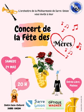 Pour célébrer les Mamans, l'orchestre de la Société Philharmonique de Sarre-Union et l'Entente Musicale de Keskastel vous invitent à leur Concert de la Fête des Mères le 10 juin prochain.